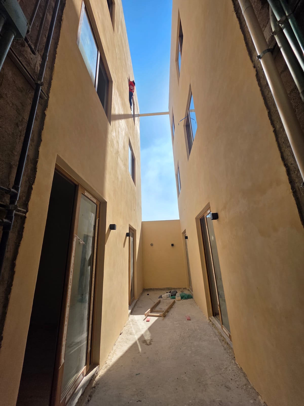 - Obra Blanca: Concluimos la colocación de la piedra en la fachada y avanzamos considerablemente en la aplicación de la pasta final en ambas fachadas (frontal y trasera).