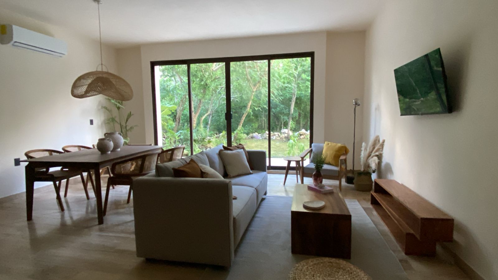 - 1 departamento : Concluido al 100% cómo departamentos muestra el cual ya incluye todo los acabados, muebles de baño, carpinterías, cancelería, cocina equipada, accesorios y AC.