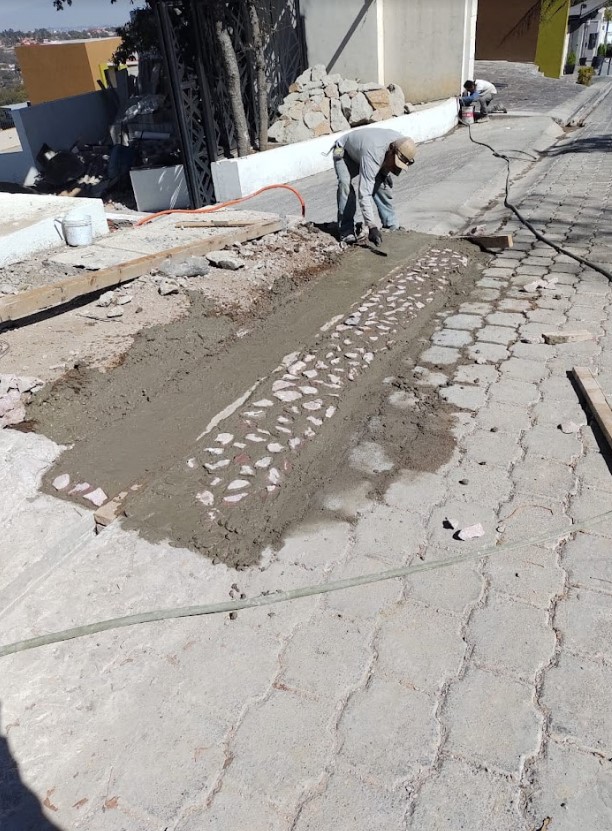 Reparación y mantenimiento de fachada del fraccionamiento y retiro de camión de ventas del área de visitas. Terminación de tapas de registros de agua y tablero de medidores.