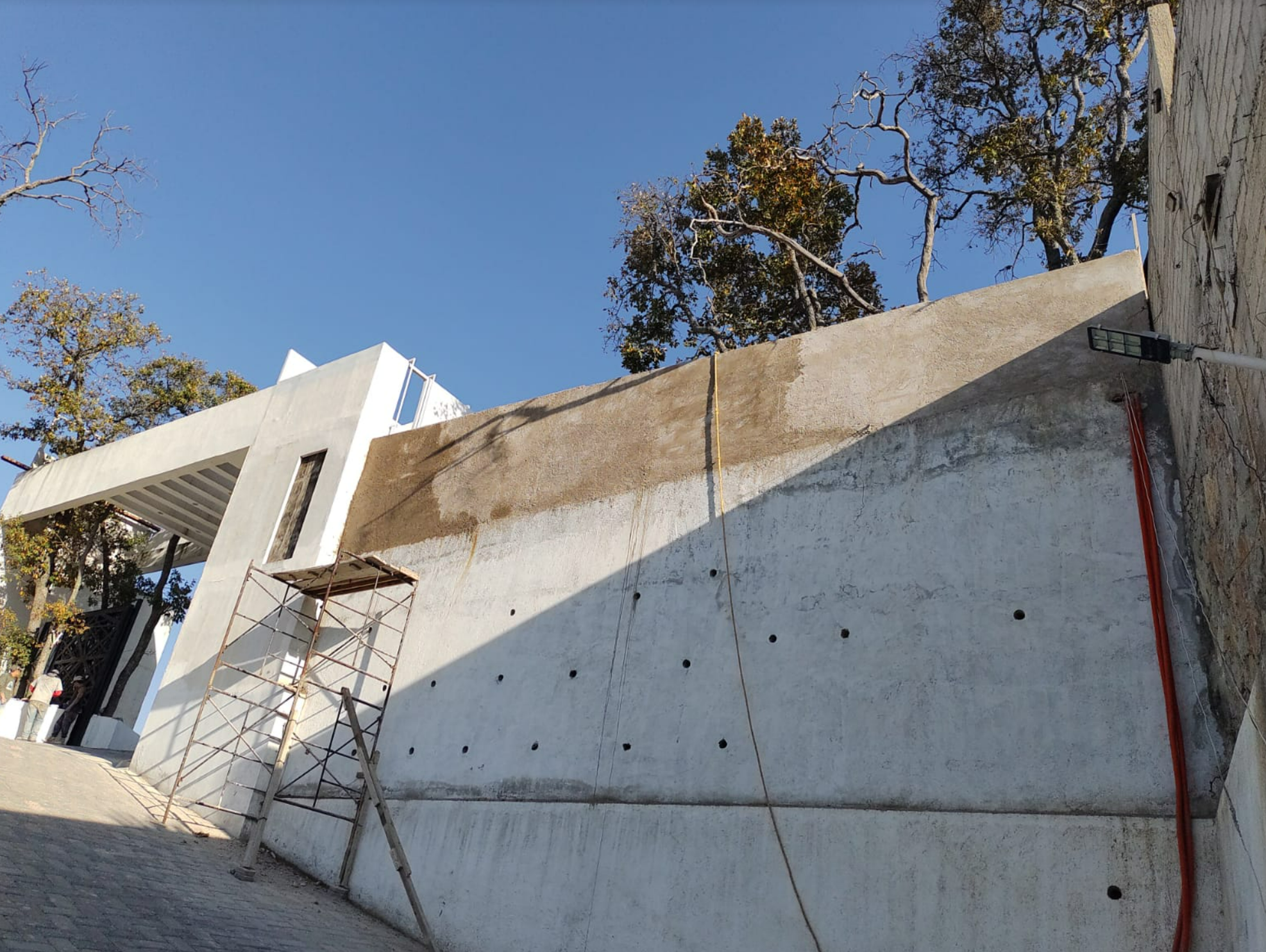 Hemos realizado una limpieza general de todo el terreno para evitar una mala imagen del proyecto. También se levantó el muro del estacionamiento de servicio y se colocó un desagüe para evitar problemas de humedad en la construcción.