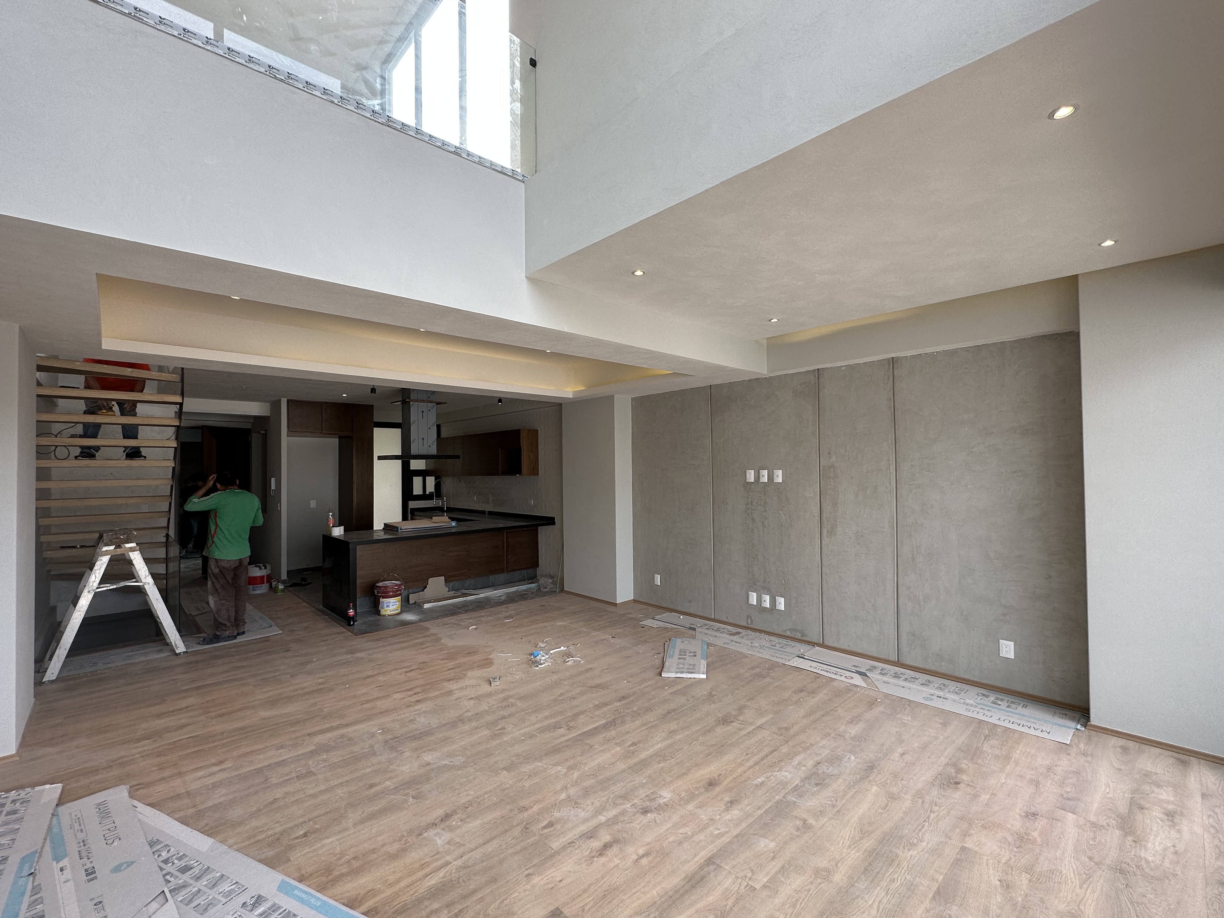 La colocación de los departamentos interiores está 100% terminada y ahora nos encontramos iniciando el proceso de pasta interior de los departamentos 101, 102, 201, 301 y 302. Así mismo, el equipo encargado de la carpintería se encuentra terminando los departamentos 402, 501, 502, 503 y 504.