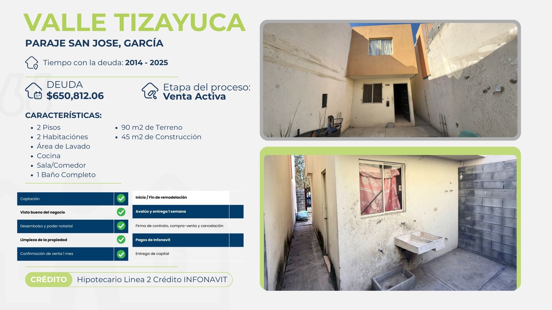 La propiedad fue firmada en notaría el pasado viernes 21 de noviembre. La familia de la Sra. Blanca tomó la decisión de dejar la ciudad y buscaba hacerlo sin cargas pendientes ni compromisos financieros. Gracias al modelo de reconversión, pudieron liberarse de una deuda de $650,812.06 MXN, correspondiente a un crédito otorgado el 6 de febrero de 2014, con un plazo de 30 años.