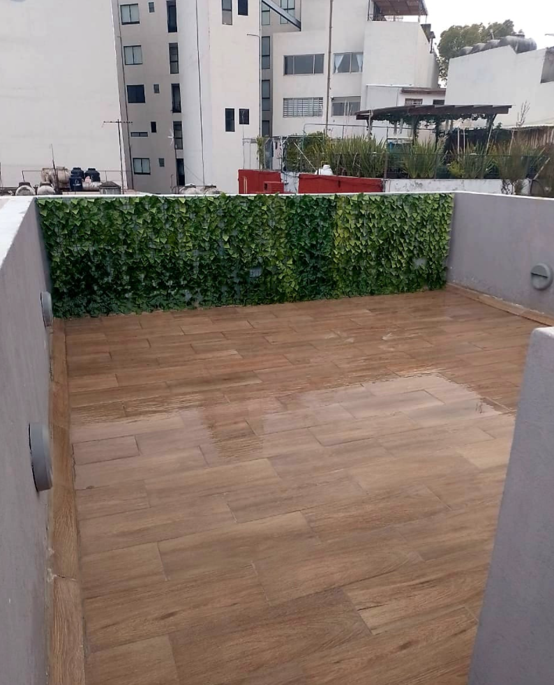 La obra se encuentra terminada. Actualmente estamos colocando piso de porcelanato en una sección del roof garden del PH303 (el cual aún se encuentra a la venta), con la finalidad de hacerlo más atractivo a potenciales compradores.