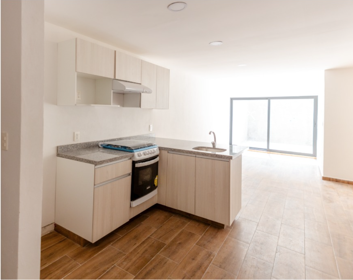 - Se instalaron puertas y cocinas en todos los departamentos.
