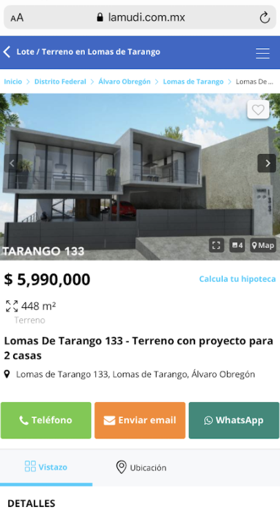 Actualmente se bajó el precio de venta de $6,990,000 a $5,990,000 esperando mayor respuesta de clientes potenciales. El inmueble se compartió con una inmobiliaria que ya lo puso en súper destacados de la plataforma "Lamudi". Anexo a esta noticia fotografía del anuncio.