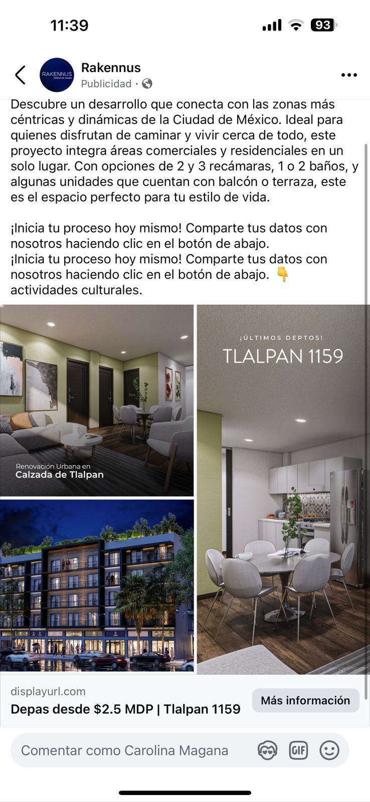 Les comparto algunas imágenes de las campañas que hemos realizado internamente. Contamos con un equipo propio de marketing, lo que nos permite gestionar directamente todos nuestros esfuerzos y pautas, sin necesidad de utilizar plataformas externas para anunciar nuestros productos. Gracias a esta estrategia, hemos logrado reducir significativamente el costo por venta y por lead, lo que ha resultado en un incremento constante de ventas mensuales en el proyecto, mejorando tanto la absorción como la conversión de nuestros leads.
