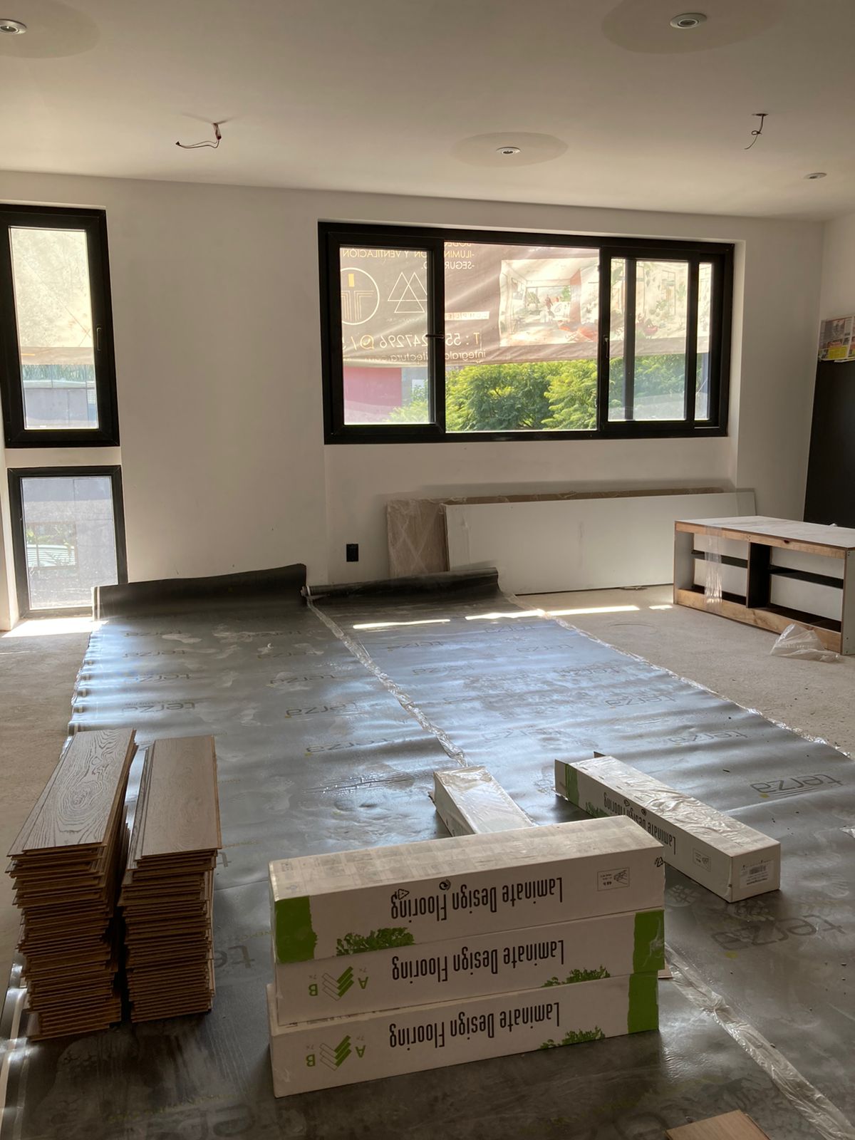 Nos encontramos terminando la iluminación y acabados finos de madera, así como herrerías y automatizaciones. De igual forma, estamos en proceso de instalación de las carpinterías y puertas.