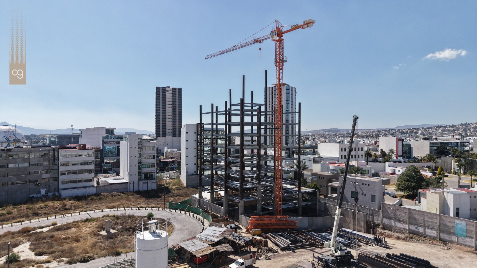 - Se espera la llegada de la grúa torre durante la primera quincena de octubre, a fin de continuar con la colocación de columnas de las cuales ya se cuenta con el 75% de suministro y trabes a partir de planta baja.