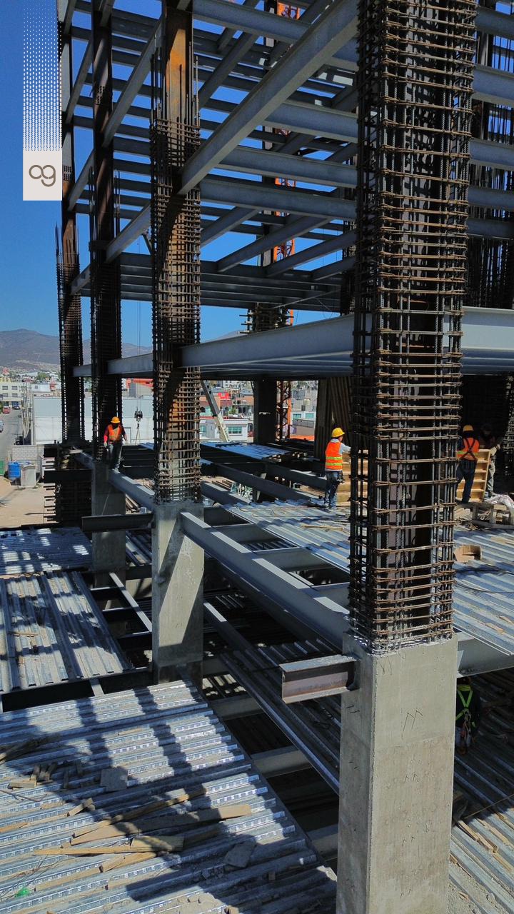 - Losacero: Se continuó con el montaje en el nivel 1 para realizar el colado del firme de concreto, alcanzando un 80% de avance en dicho nivel.
