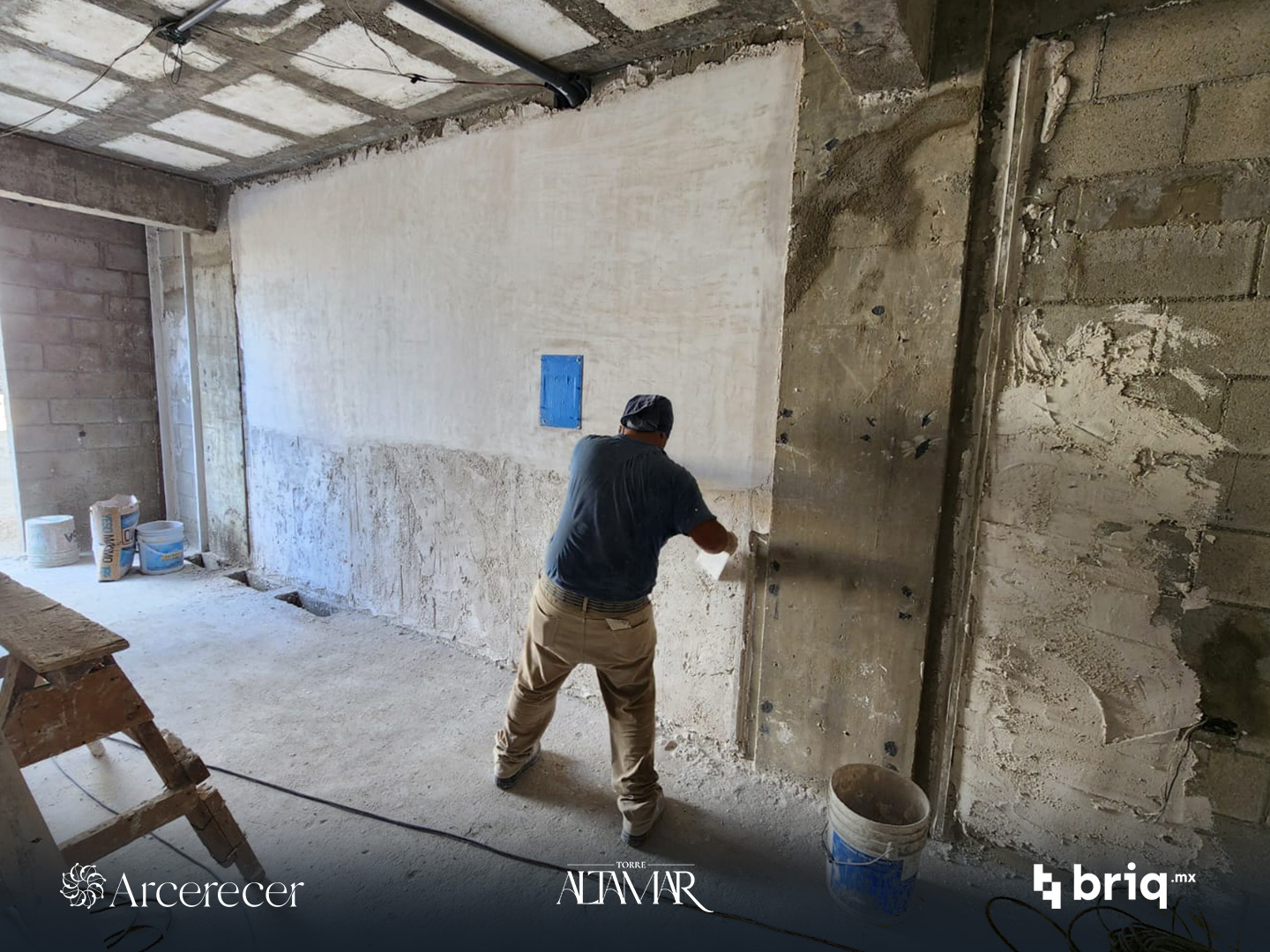 - Avances en los trabajos de albañilería fina: aplanados, preparación de muros y superficies.